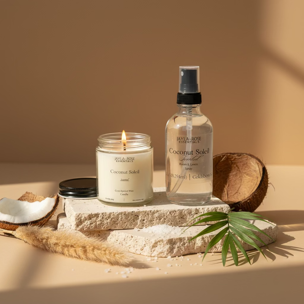 Premium coco apricot wax candles, room sprays and reed diffusers handcrafted for your home